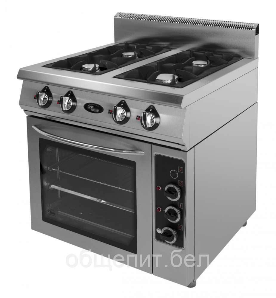 в дополнение к плите 50001 - духовка 4хGN 2/1 из н/стали дверь со стеклом(закаленным), подсветкой, стрелочным термометром: сверху горелка 4.5 kW, снизу горелка 4.5 kW, управление горелками с помощью 2-х газовых термостатов, полностью из н/стали, газовая мощность 37,5 kW, 3 горелки по 6.5 кВт, 1 - 9 кВт, г.нетто 800x800x1050, 161кг, г.брутто: 890х890х1250, 186кг. Опционально доступны решетки горелок плиты из нержавеющей стали и чугуна.