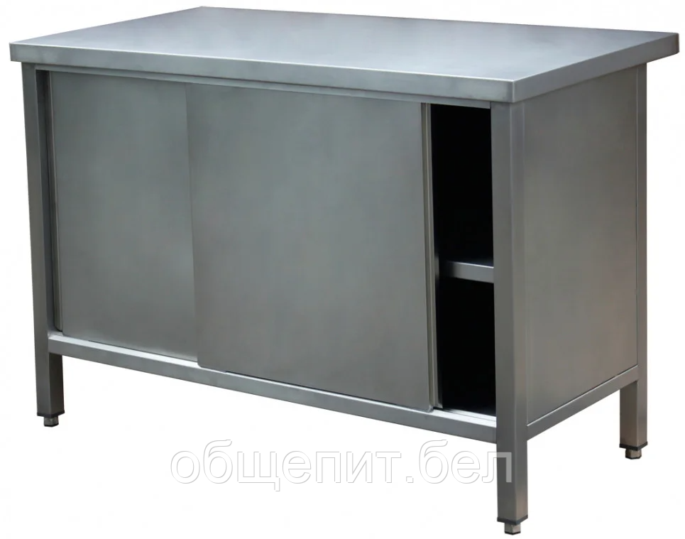 Стол-тумба производственная 1600х500х850 (высота указана по столешницу) мм выполнена из нержавеющей стали марки AISI 430 толщиной 0,8 мм (по желанию заказчика может быть изготовлена полностью или частично из других марок стали другой толщина).