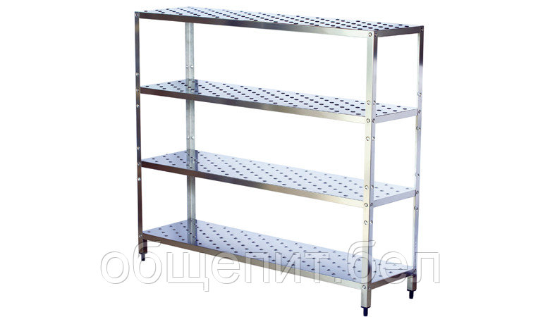 - стеллажи оснащены 4 перфорированными полками из нержавеющей стали (перфорация диаметром 1 см через каждые 5 см);